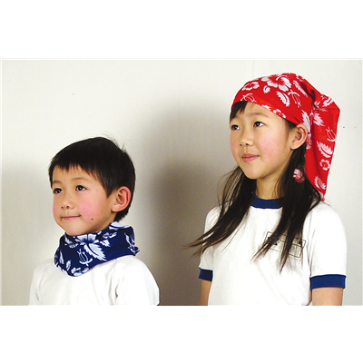 かぶるだけでOK!簡単バンダナよくのびる素材を使用しています。筒状なので、頭にも首にも楽々つけられます。 よく伸びる!