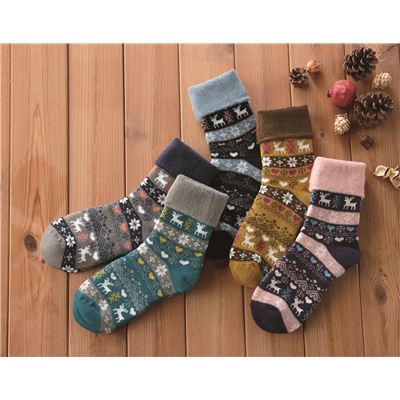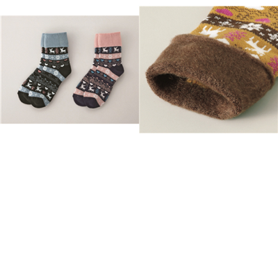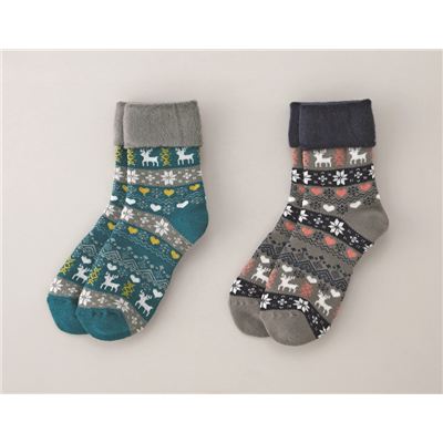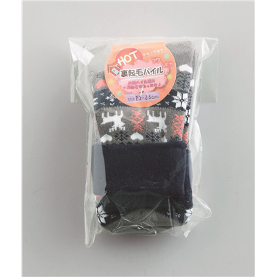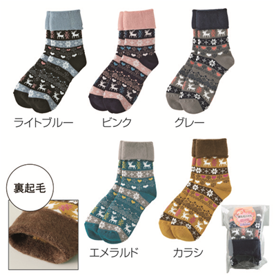 ノルディック柄と色のかわいさが目を引く、パイル編み×裏起毛仕様ソックス。
