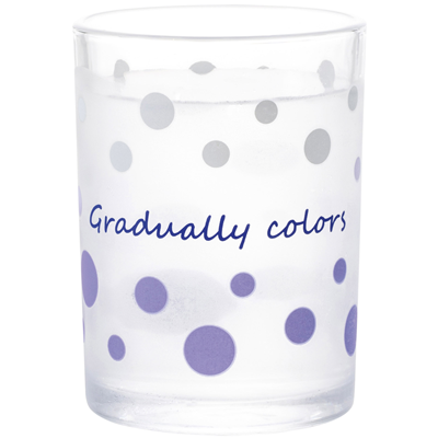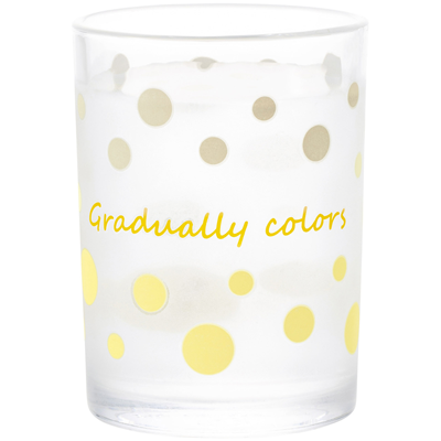 冷やすとカラフルな水玉模様に! 冷えると浮き出るグラデーションカラーのドットデザイン Step1…グラスを用意する! Step2…冷やした水を注ぐ! Step3…カラフルな水玉模様に!