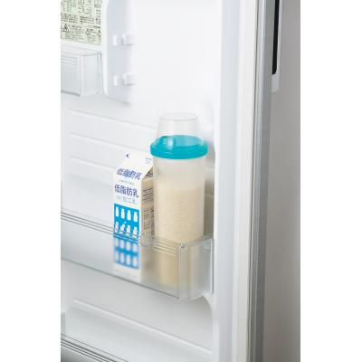 米・麺類の保存に適した冷暗所・「冷蔵庫」のドアポケットにぴったり 計量カップになっている蓋でお米一合が、パスタメジャーとしても使える中蓋でパスタ一人前(約80g)が計れます!