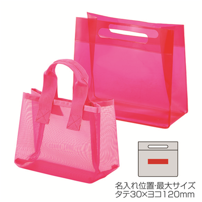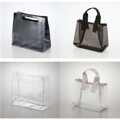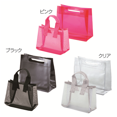 クリアバッグ:塩化ビニル メッシュバッグ:ナイロン、ポリエステル、ポリプロピレン